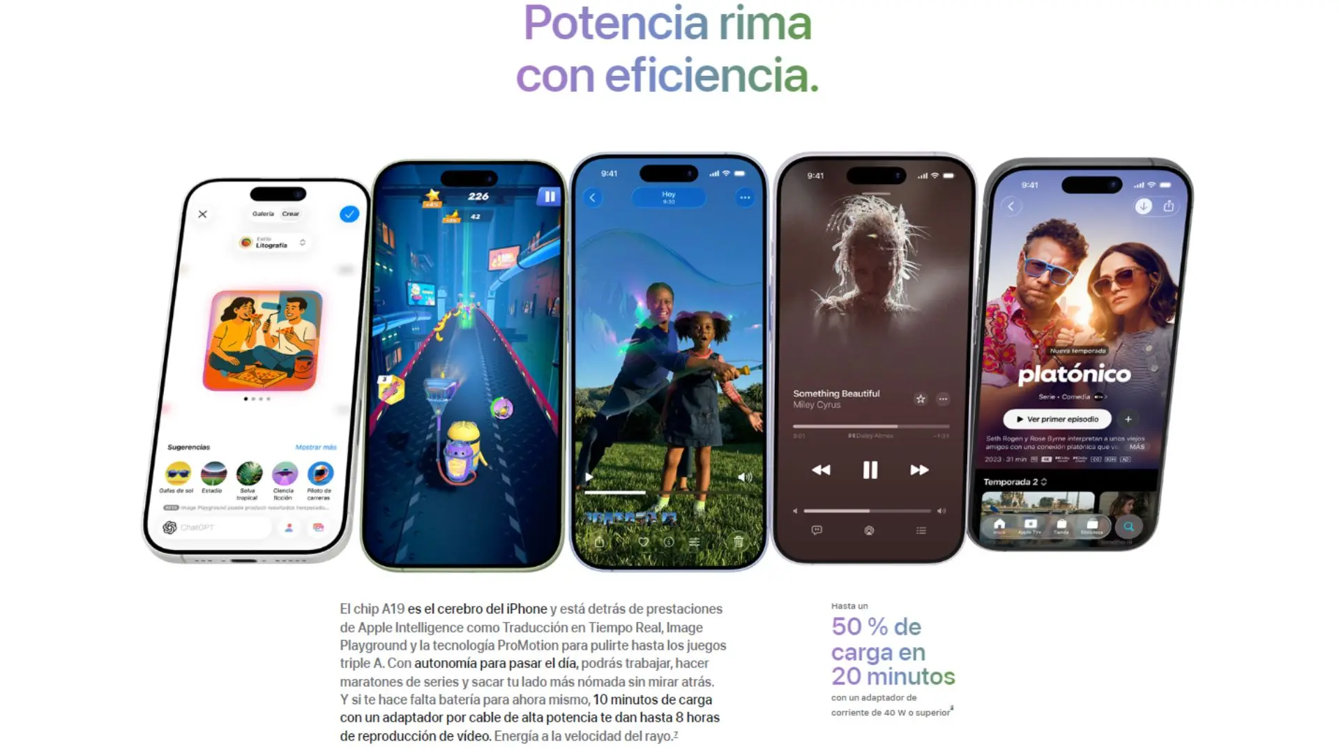 | Apple Intelligence | Apple Intelligence está integrado en tus apps y prestaciones para ayudarte a redactar, expresarte y hacer tus tareas diarias sin esfuerzo. Cuenta con revolucionarias prestaciones de privacidad para que nadie más pueda acceder a tus datos. Ni siquiera Apple. |