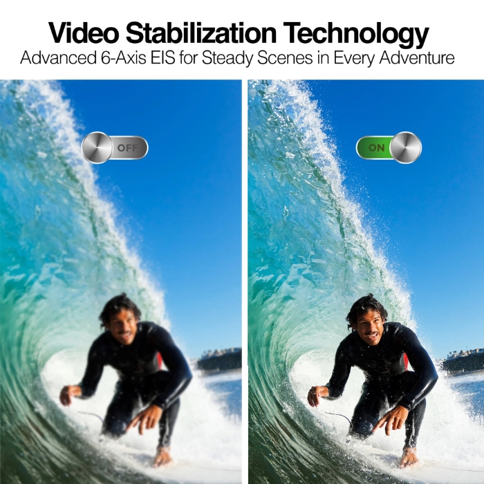 La Epic 90 redefine la captura de aventuras, ofreciendo video 4K a 60 fps y fotos de 24 MP con EIS avanzado de 6 ejes para una estabilización mejorada, lo que garantiza imágenes fluidas y de alta calidad incluso en los entornos más dinámicos. Gracias a su resistencia al agua integrada, la cámara soporta profundidades de hasta 21 metros, eliminando la necesidad de una carcasa adicional.