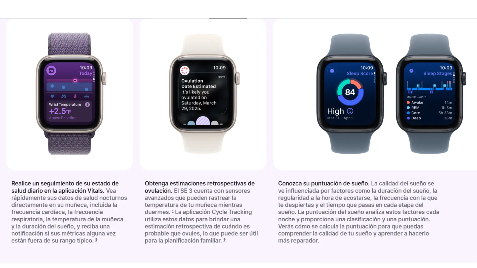 El Apple Watch SE 3 está repleto de funciones esenciales de salud, fitness, conectividad y seguridad, todo a un precio increíble. Monitoriza tu nivel de sueño. Obtén información de salud más completa en la app Vitals.