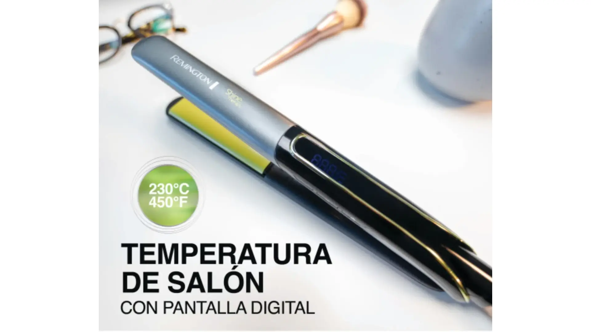 Si deseás un cabello reluciente con un 86 % más de brillo, elegí la plancha de cabello Shine Therapy de Remington. Las placas con revestimiento de cerámica avanzada, contienen aceite de aguacate y macadamia que al calentarse liberan microacondicionadores que realzan el brillo de tu cabello.