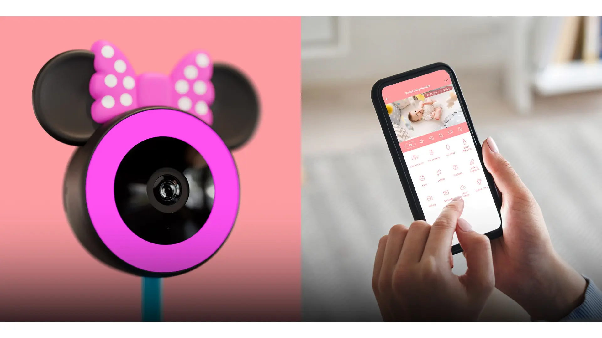 La magia de Disney se une a la tecnología inteligente para brindarte tranquilidad y seguridad en cada momento. Diseñada especialmente para padres que buscan monitorear a sus pequeños con estilo, esta cámara edición Minnie Mouse combina funcionalidad avanzada con un diseño encantador.