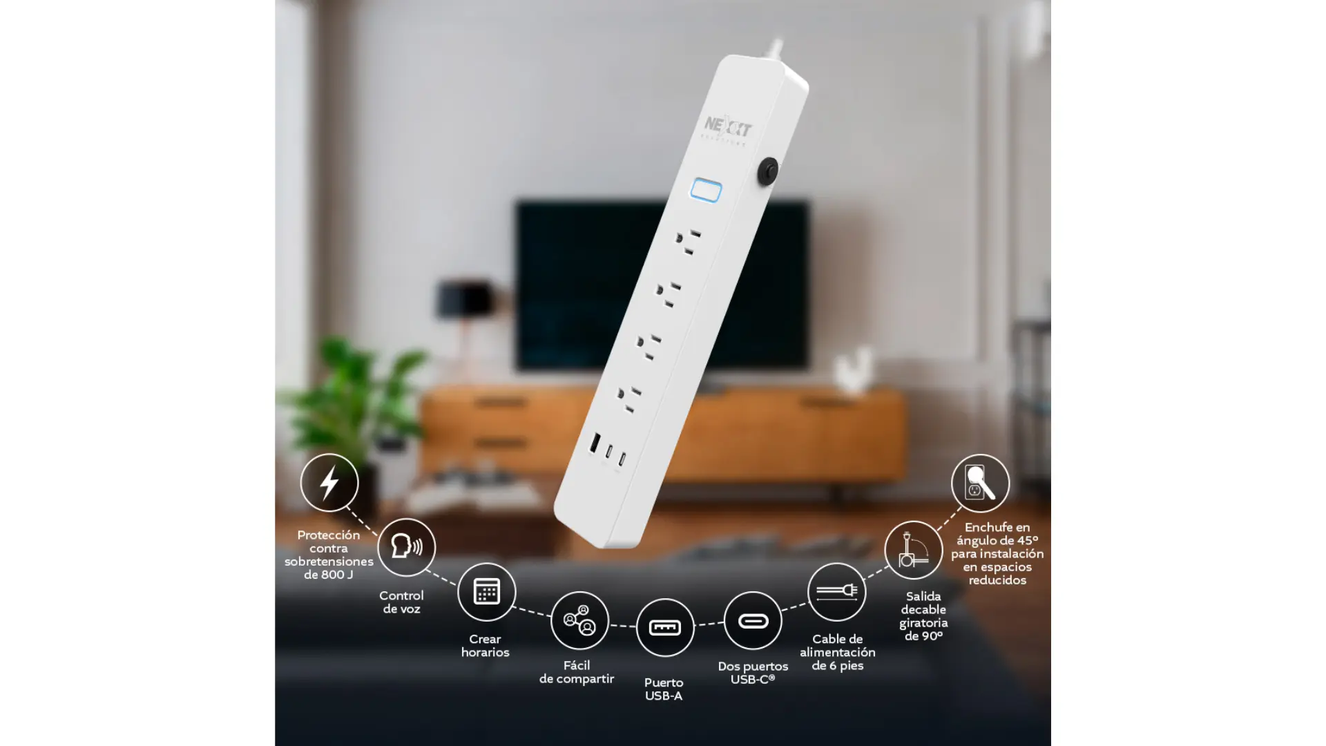 Regleta Inteligente Nexxt Solutions Wi-Fi Control por Voz Temporizador Blanco NHP-E710