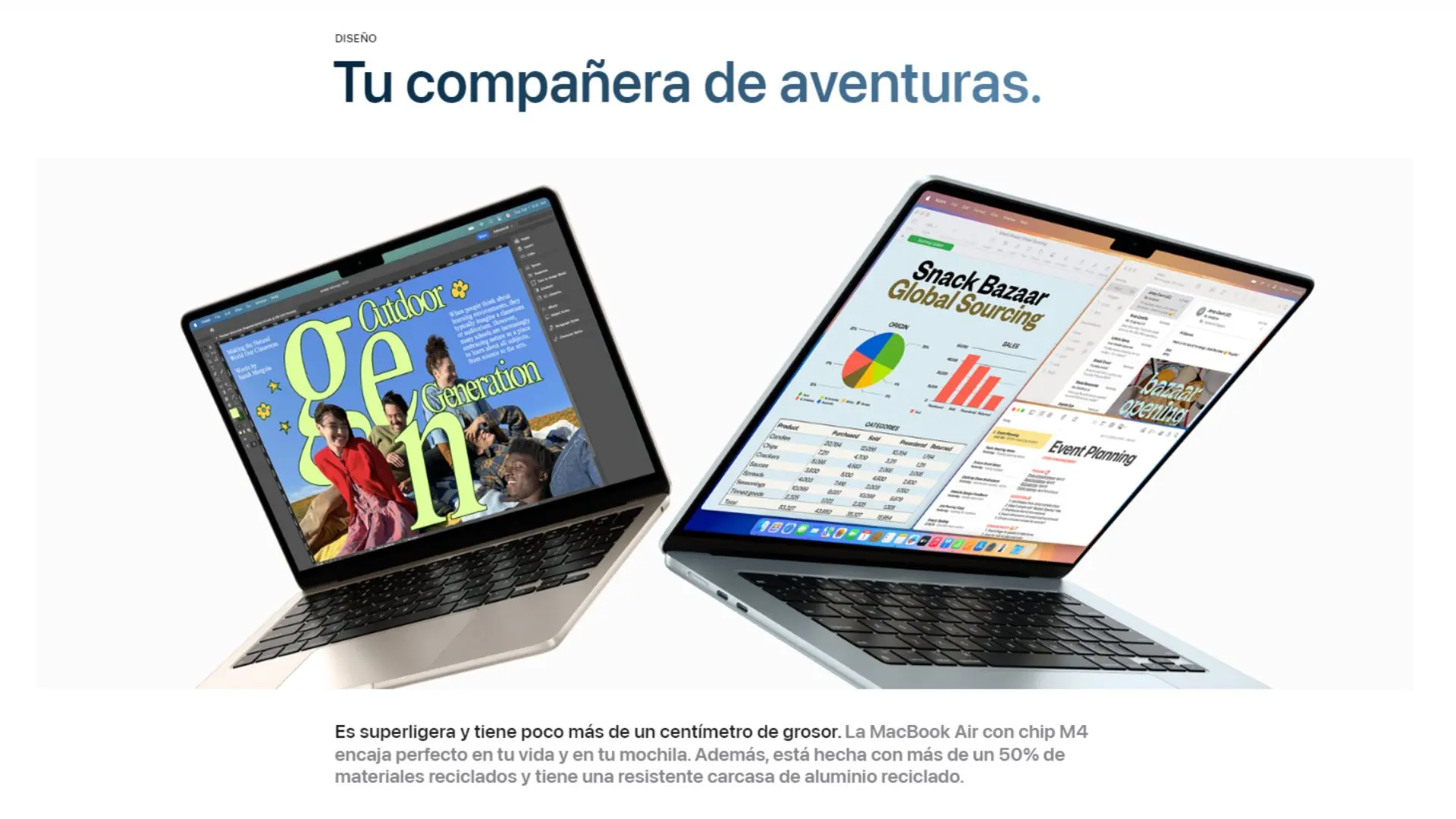 La MacBook Air con chip M4 te da la velocidad que necesitas para volar en todo lo que hagas. Tiene una batería que dura hasta 18 horas. Está diseñada para Apple Intelligence, que te ayuda a hacer de todo con mucha facilidad. Estrena un hermoso color azul cielo. Y como es superportátil, te sigue adonde vayas y está lista para enfrentarse a lo que sea.
