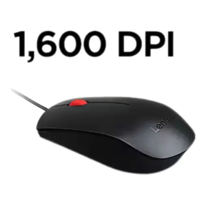 El mouse USB Lenovo Essential es más que tu mouse básico. Posee una conexión fácil de tipo conectar y listo a PC con un cable USB. El diseño ergonómico de tamaño completo proporciona un agarre cómodo que permite su uso todo el día. Un sensor óptico de 1600 dpi y alta resolución te garantiza un deslizamiento sin problemas de una ventana a otra.